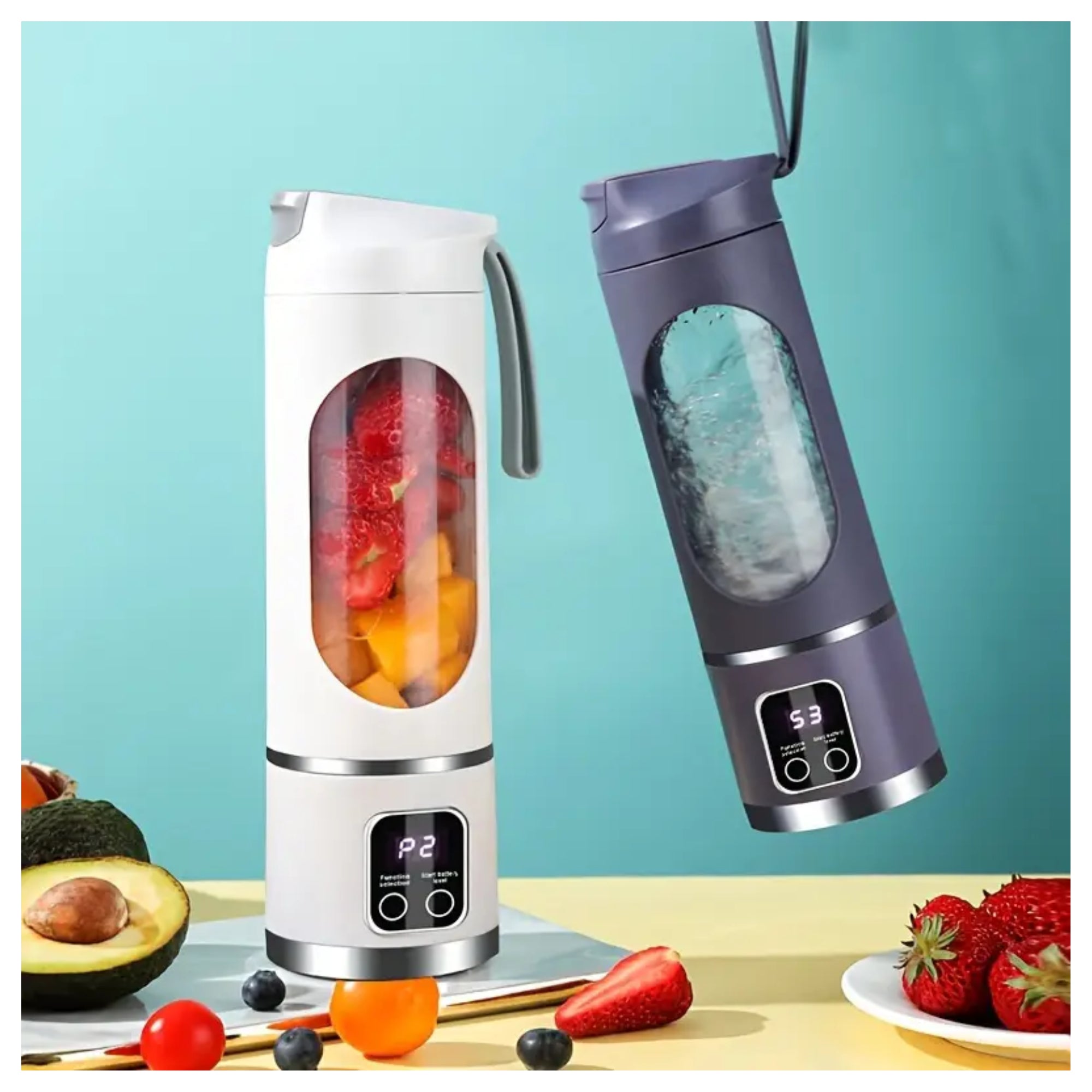 Olvídate de la licuadora grande y el desorden. Aquí mezclas, pones tapa y sales. Ideal para proteína, jugos y smoothies con frutas suaves; limpieza express con agua y una gota de jabón.
