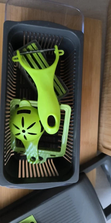CortaChef™ es la solución que esperabas Su diseño todo-en-uno con cuchillas intercambiables te permite cortar, rallar y rebanar cualquier verdura en segundos, logrando resultados profesionales. Con su contenedor integrado, tu cocina se mantiene impecable, mientras la máxima seguridad protege tus dedos.
