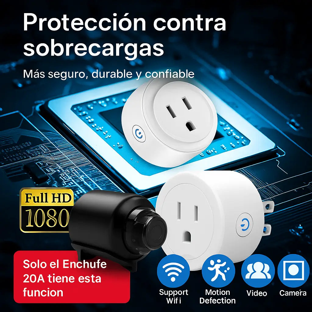 💡Ambos dispositivos trabajan juntos para darte tranquilidad total. La Mini Cámara Espía™te permite ver en tiempo real lo que ocurre en tu hogar, negocio o vehículo, mientras que el Enchufe Inteligente WiFi 20A™te da control remoto sobre tus aparatos eléctricos.