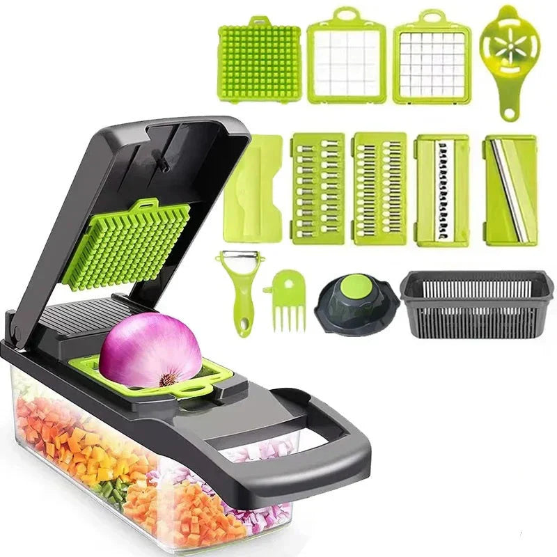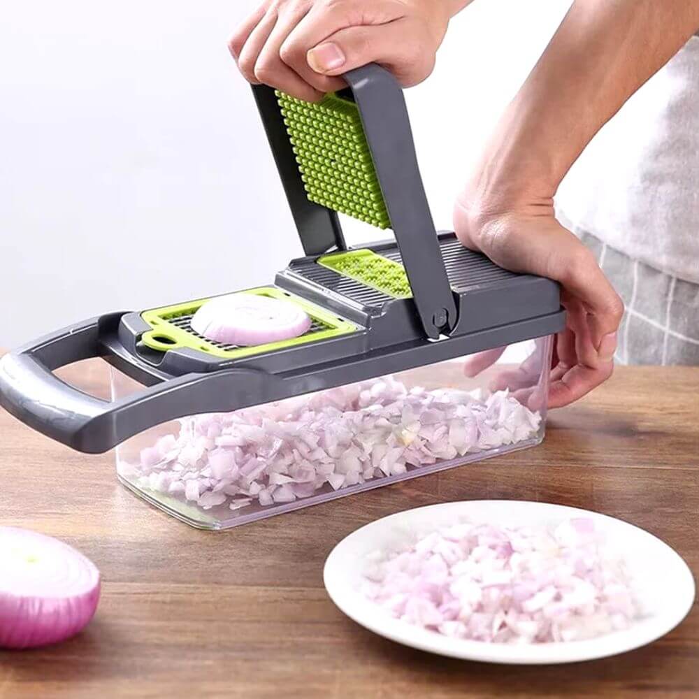 Simplifica tu cocina con este picador y rebanador multifuncional. Corta, pica, ralla y rebana verduras sin esfuerzo en segundos. Incluye múltiples cuchillas intercambiables para todo tipo de preparaciones. Ahorra tiempo y disfruta de platillos saludables rápidamente. ¡Indispensable en tu hogar!