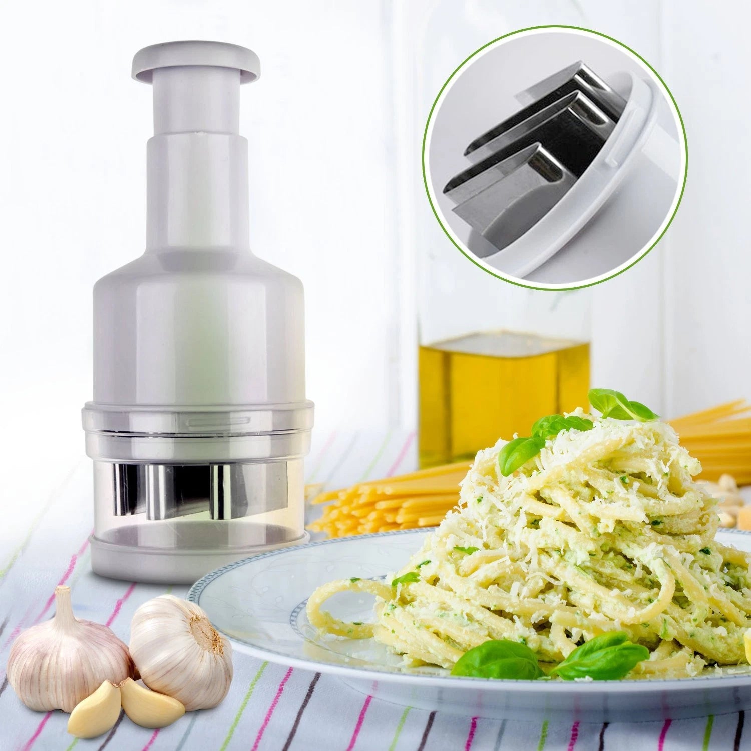 El picador que transformará tu cocina. Con su innovador mecanismo de una sola pulsación, picar será más fácil que nunca, ahorrándote tiempo y eliminando los cortes desiguales.es duradero, resistente a la corrosión y muy fácil de limpiar.